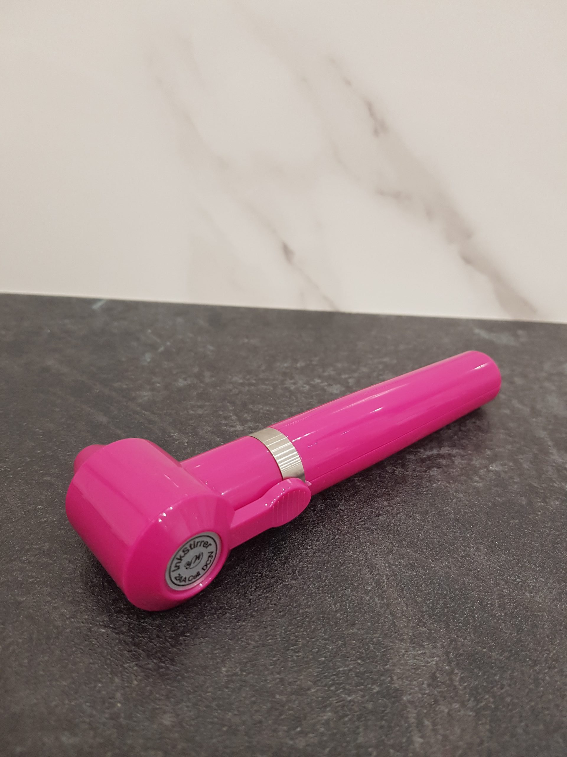 Mixer do mieszania pigmentow . Kolor czarny lub różowy (fuksja). Zasilany przez dwie baterie AA . W komplecie 5 wkładów do mieszania. Niezbędny do usprawnienia pracy linergisty.
