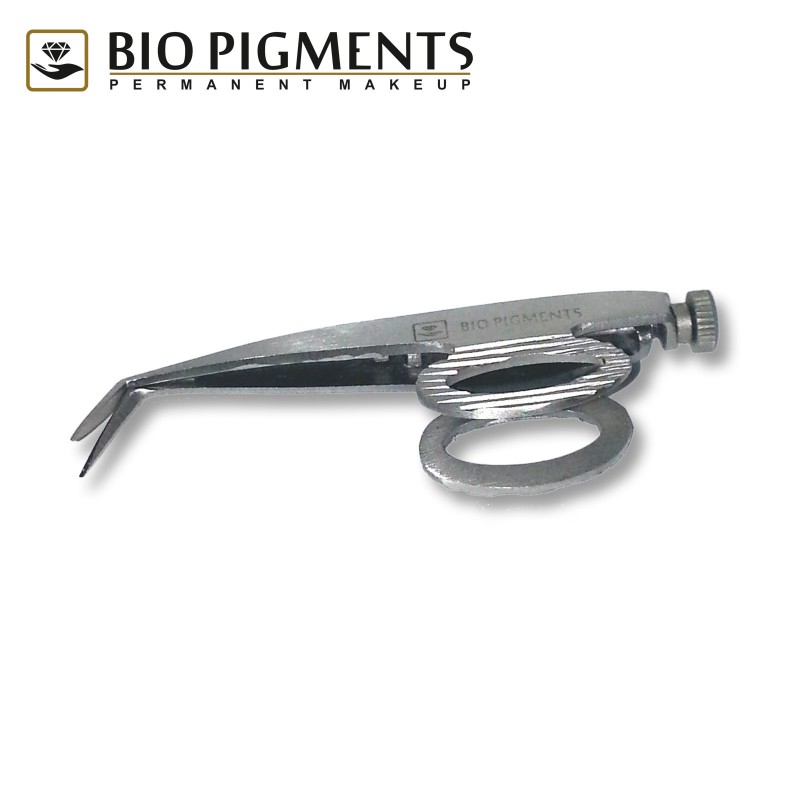 Specjalistyczne, ergonomiczne nożyczki do regulacji brwi marki BioPigments wykonane z stali japońskiej.